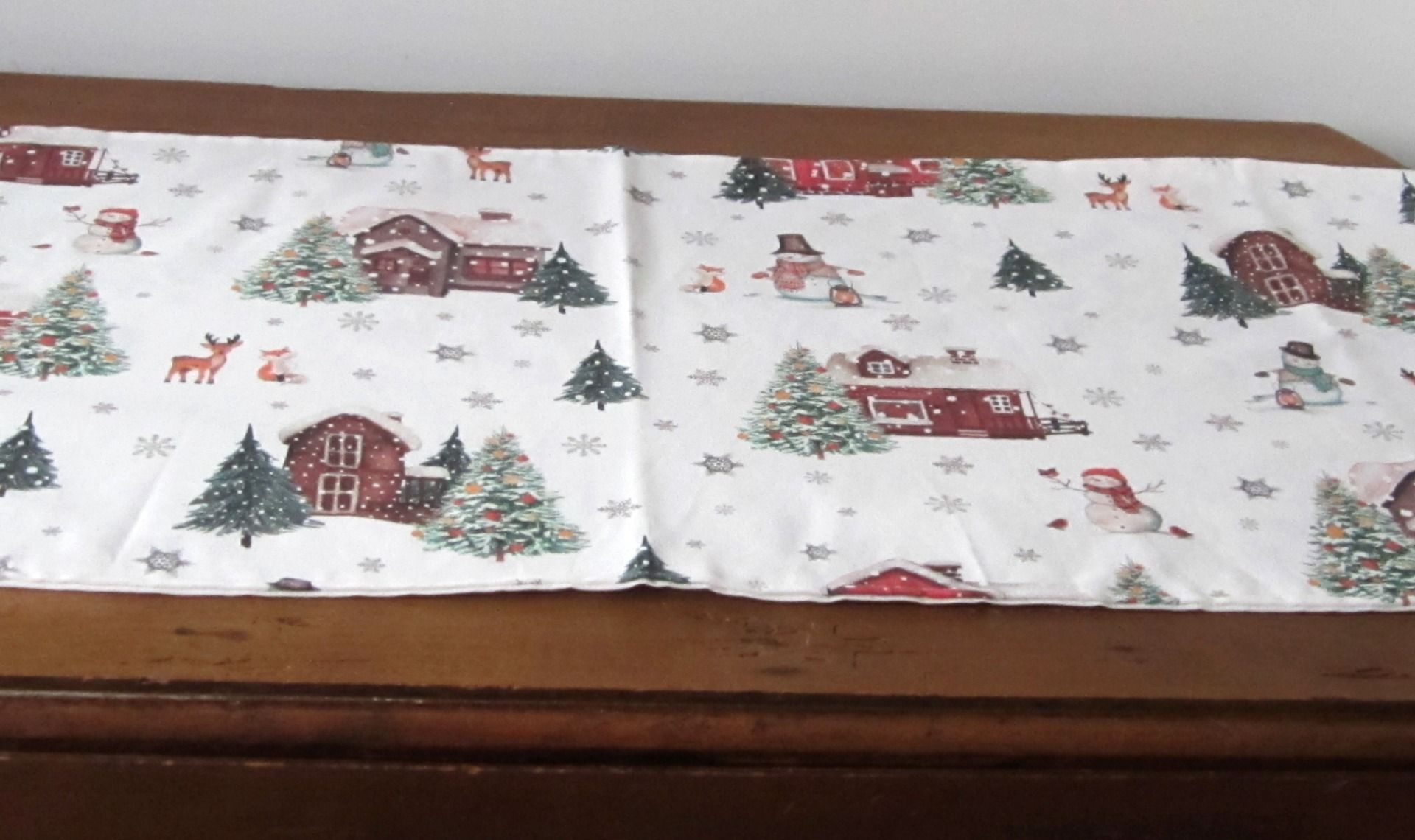 Offrez-vous ou offrez à un amoureux de Noël un joli chemin de table fait avec soin en tissu de qualité. Il peut être placé retombant de chaque côté de la table ou même en centre de table, comme un grand napperon. LIRE LE DESCRIPTIF CI-DESSOUS