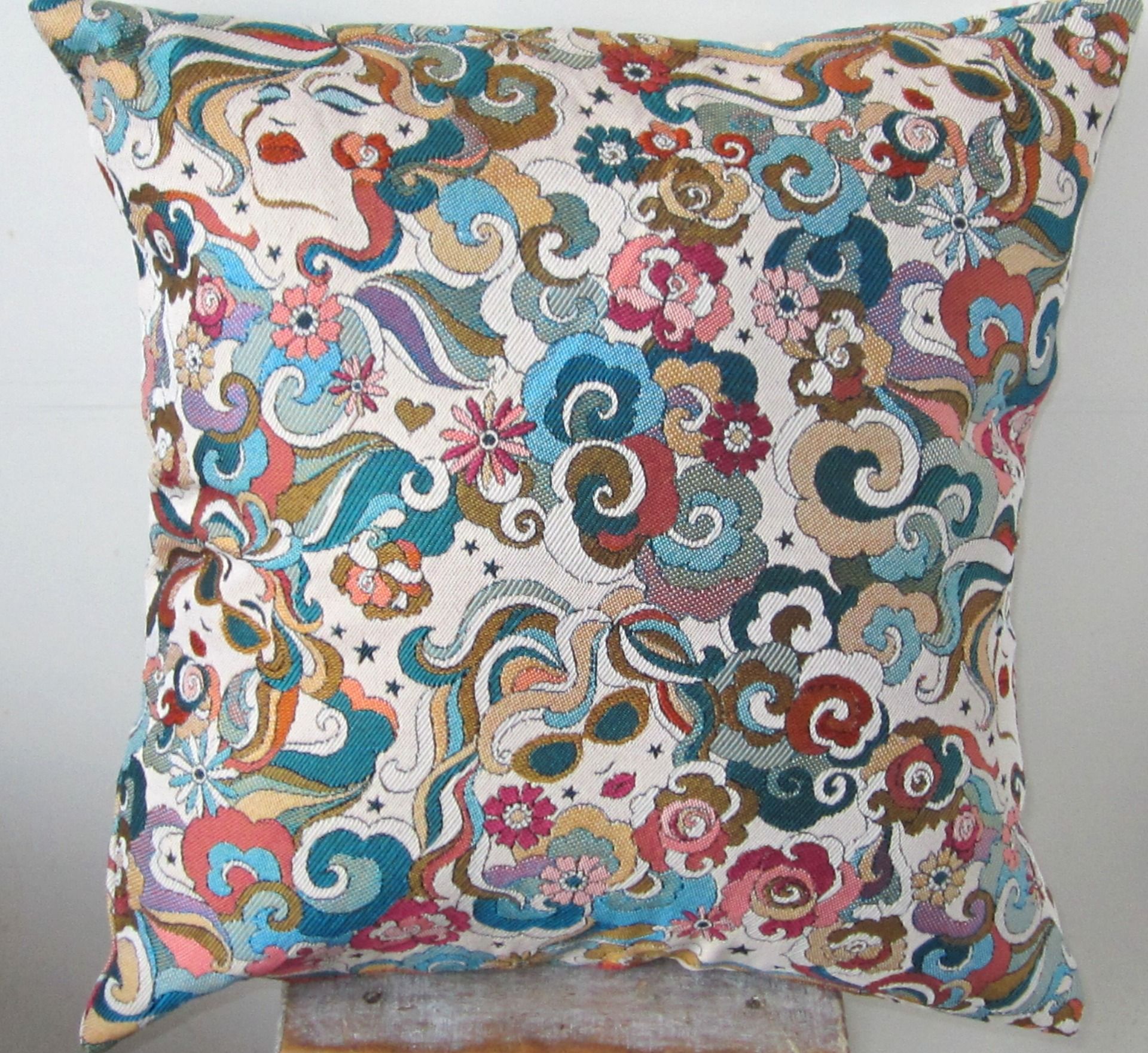 Housses de coussin en magnifique tissu jacquard, 50x50 cm, fermeture à l'arrière. Motif identique recto verso, sauf pour la housse "lutins" dont le verso est en toile coton écrue. Vendues à l'unité, sans coussin
