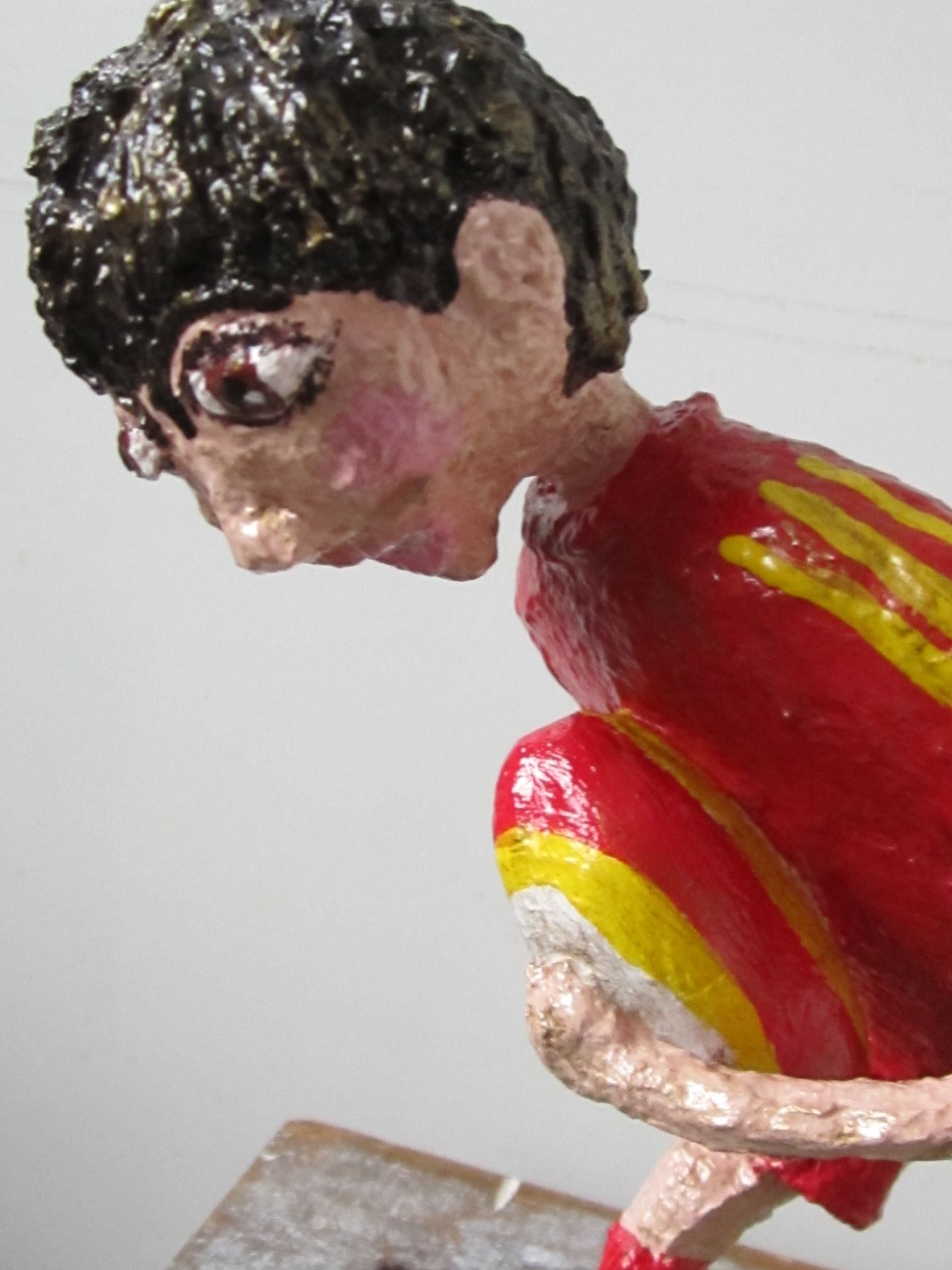 Sculpture en papier mâché, modelée à la main, peinte à l'acrylique et vernie. Modèle unique